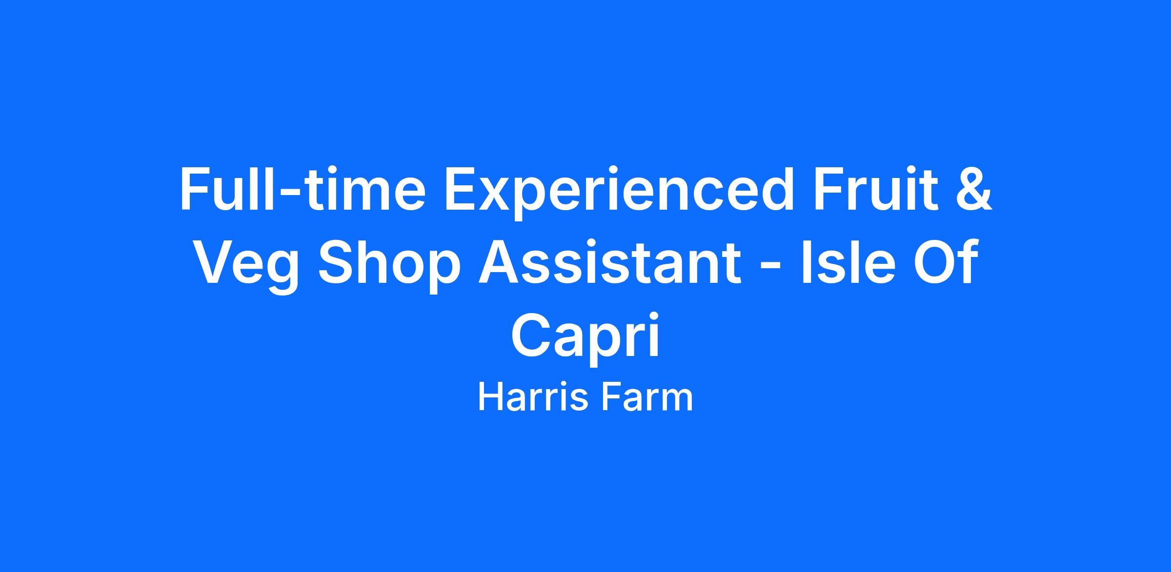 We are looking for Friendly and Customer focused individuals to join our exciting fresh food store in Isle Of Capri (Gold Coast). Do you love your trade? and looking to work with one of the leading fresh retailers.