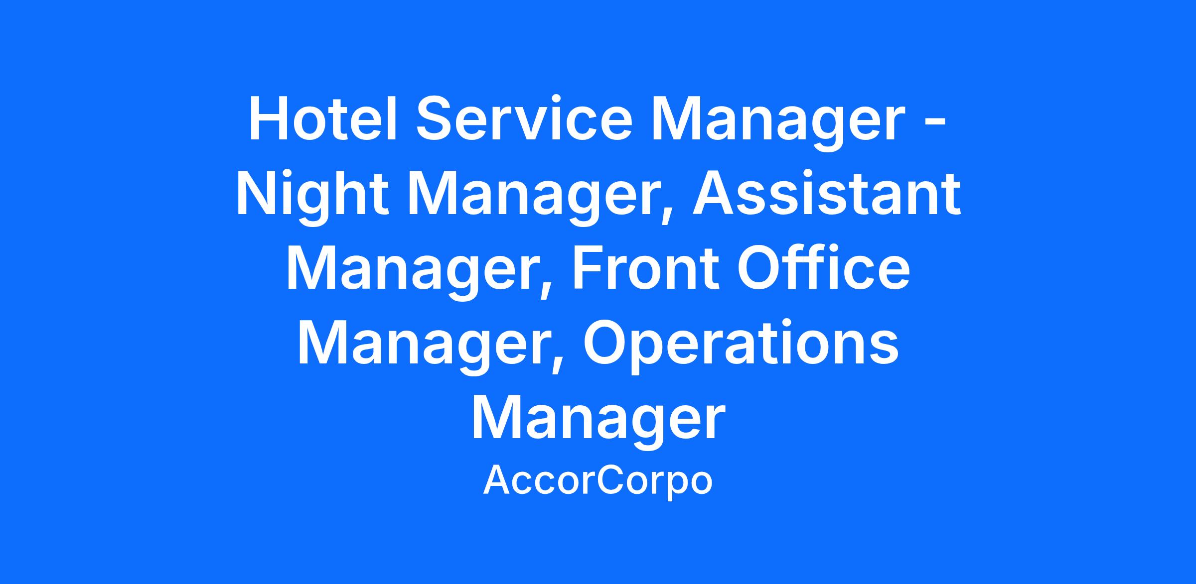 We have a number of different manager roles available including Night Manager, Assistant Manager, Front Office Manager, Operations Manager, and Housekeeping Manager.