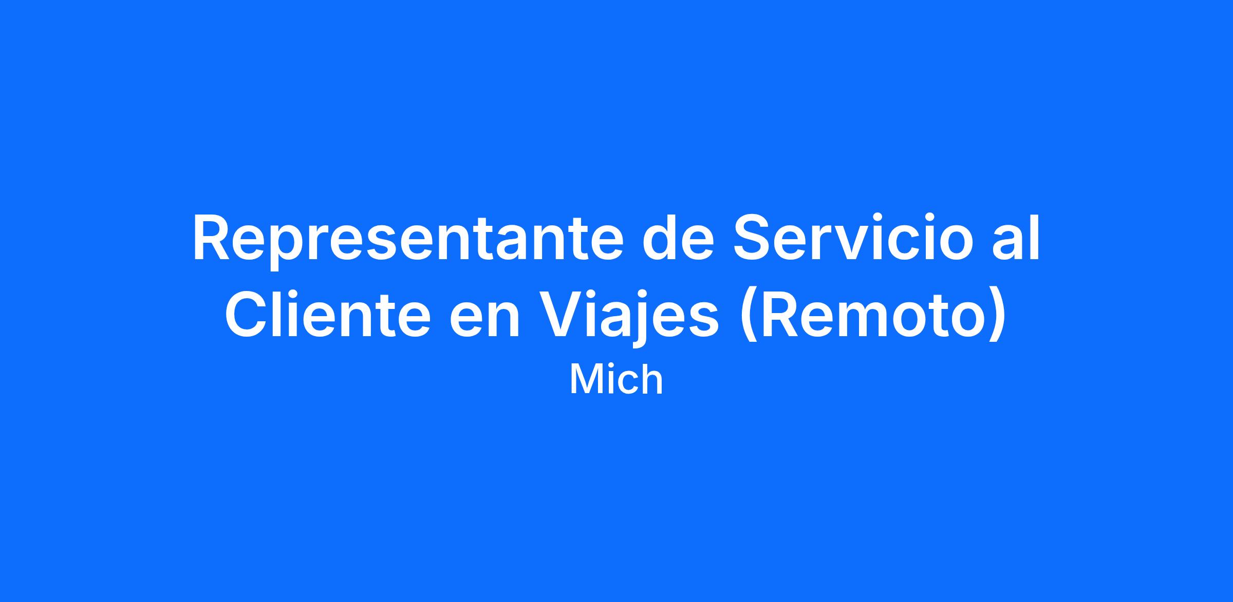 - Experiencia en servicio al cliente (se prefiere experiencia en viajes, hospitalidad o áreas relacionadas)