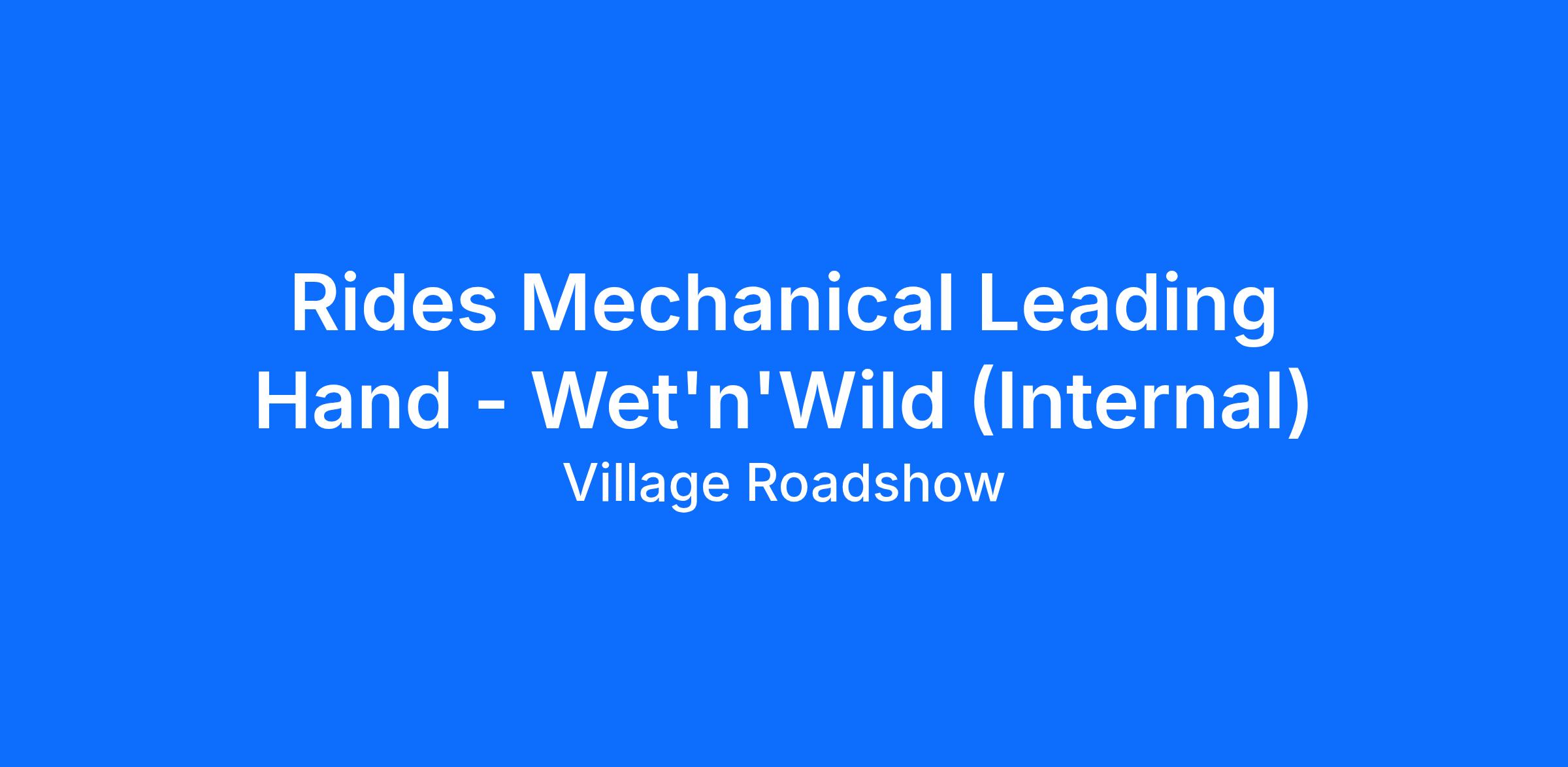 Assist in supervising the Maintenance team members at Wet’n’Wild. You’ll dive into the action by providing technical support for rides, attractions, plant and equipment. You will also organize administration and maintenance of repairs.
