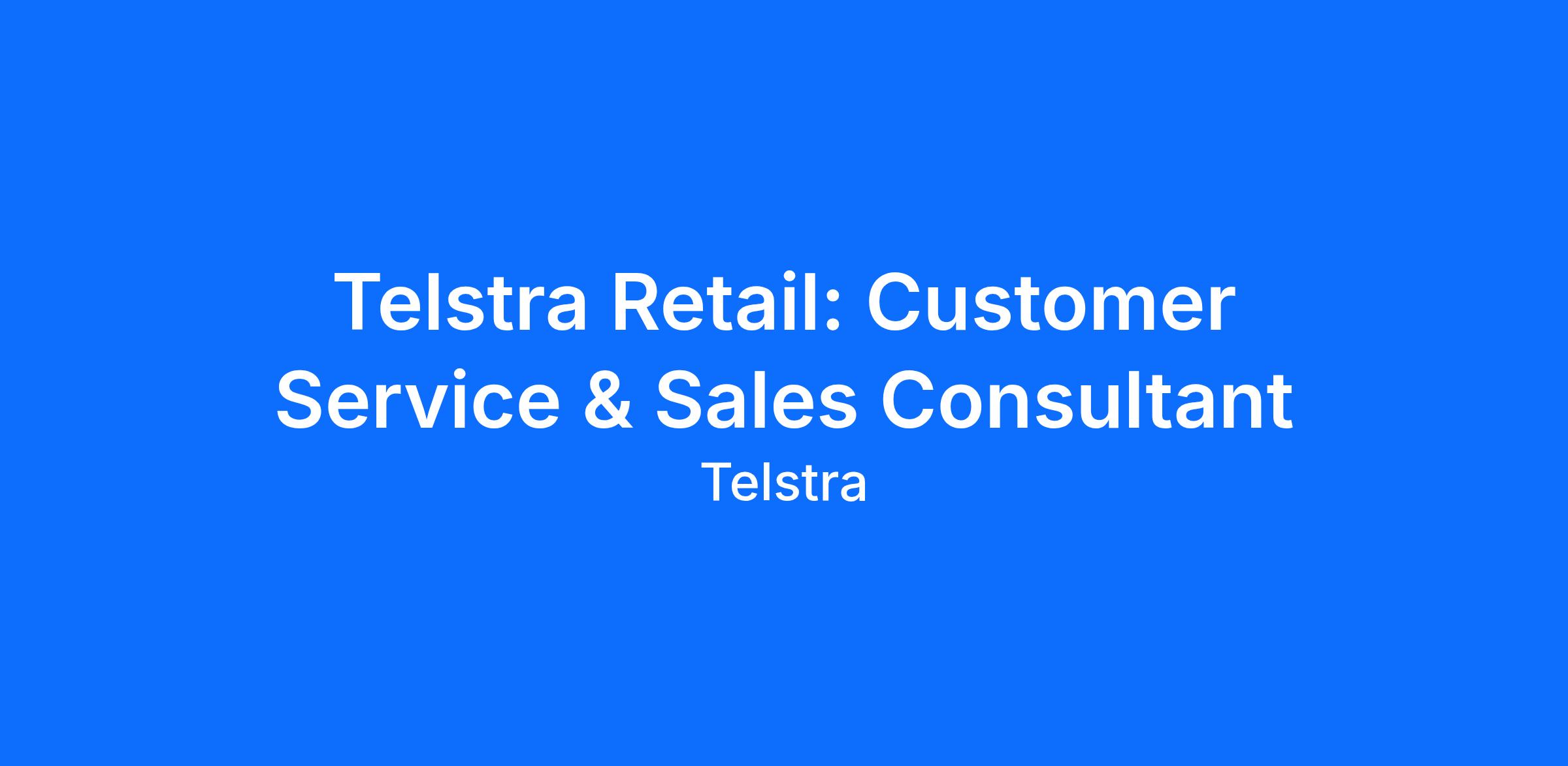 As a Retail Sales Consultant, you are passionate about delighting Telstra’s customers through outstanding customer service. You achieve this by providing an exceptional in-store customer journey, and through your collaborative approach you empower customers by identifying the products and services they need to transform their telecommunications experience.Our purpose is to build a connected future so everyone can thrive. Working in a Telstra Retail Stores is not ‘just a job’, it’s an opportunity for tech-curious problem solvers to build a meaningful career within an iconic Aussie brand. The benefits are pretty awesome, too.
